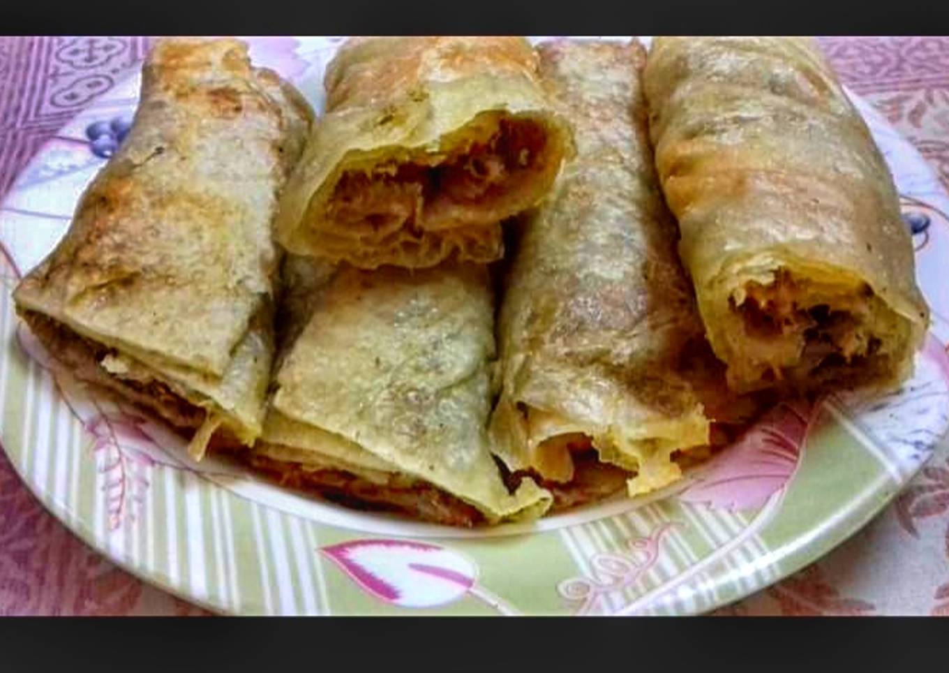 - Phir usme shami kabab ke keenay ko rakh kar sliced onion dal kar puriyon ko roll larden.