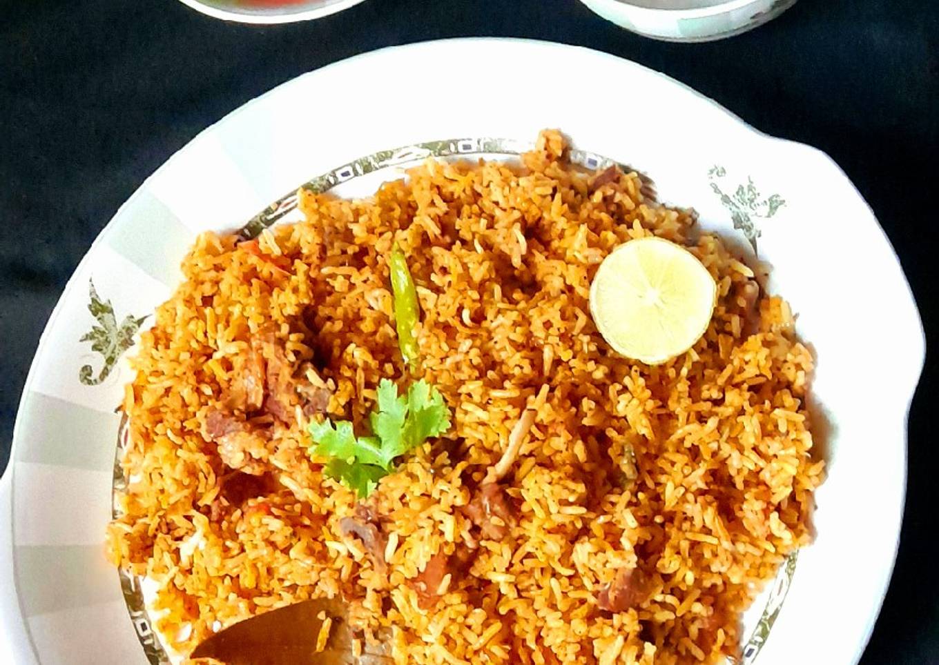 Hydrabadi Mutton biryani is a rice and meat dish from hydrabadi cuisine in which rice and meat cooked separately, then layered with tangy taste of curd and tomatoes.